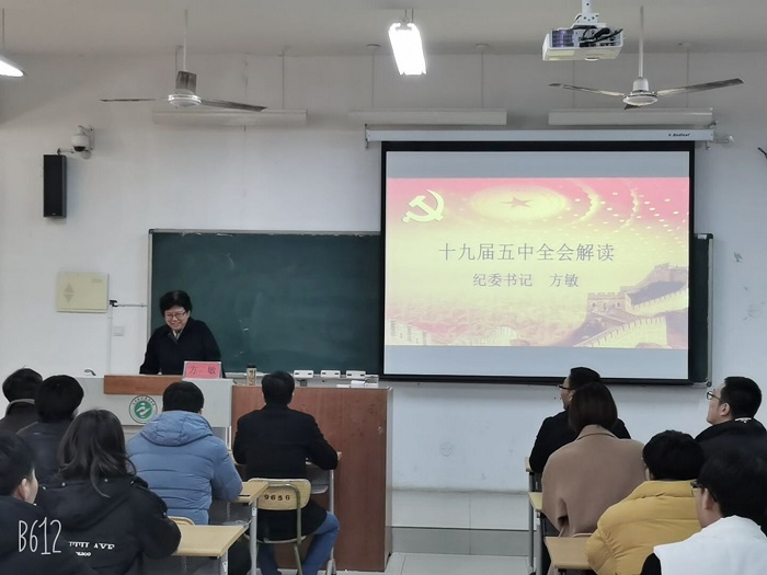 12月2日下午,学校副校长王建明在创新楼B314教室向自动化与通信工程学院师生宣讲了十九届五中全会精神。宣讲会由自动化与通信工程学院党总支书记郑宝民主持,学院师生代表100余人聆听了宣讲。 王建明副校长从党的十九...