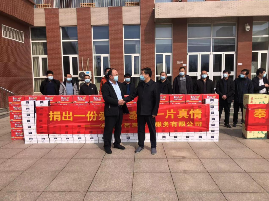 3月23日,在我院全体师生奋力抗战新冠肺炎疫情的关键时期,学院收到了河北千喜鹤饮食股份有限公司与沧州茗惠餐饮服务有限公司传递的温情与心意。 尔长华经理代表千喜鹤公司向学院捐赠一吨苹果、沃柑、香蕉等各类水果...