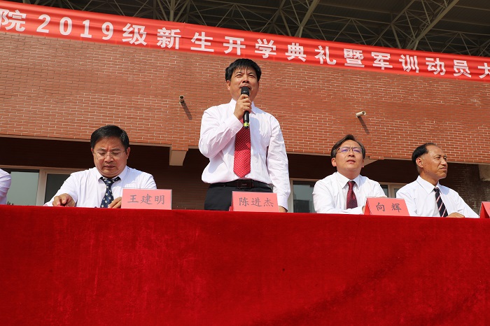 9月11日下午,我校党委书记陈进杰在学校操场为2019级新生讲授开学第一课,副校长王建明主持活动,3400多名新同学整齐列队,聆听大学第一课。 陈书记以“继承传统,放眼未来,做新时代的水院人”为题,围绕明校史、诵...