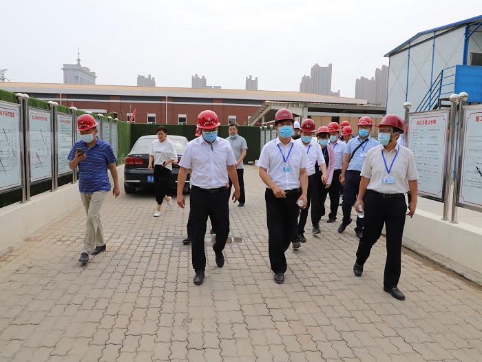 我校7号学生公寓即将全面封顶,为确保工程质量和进度,6月23日上午8:00,学校党委书记陈进杰、校长向辉、副校长于振海以及后勤管理处、党政办、宣传部相关部门领导到7号学生公寓施工现场进行调研,并为奋战在一线的工程师和工人们送去了慰问品和关怀。
