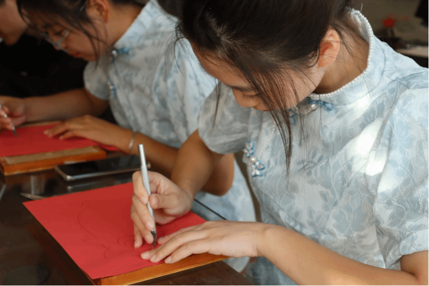 为进一步增强大学生对中华优秀非物质文化遗产所承载的历史与文化价值的认知和认同,开拓眼界,提升审美素养,同时更好地传承和发扬中华优秀“非遗”文化,10月上旬,院团委书记路维、团委老师杨洪泽、王圣洁带领同学们来到了易游中国一站式体育服务平台,美育实践基地“沧州市非遗传习所”学习刻纸。非遗传习所所长马振领为大家讲述了刻纸的由来,并且细心教给同学们的入门技巧。