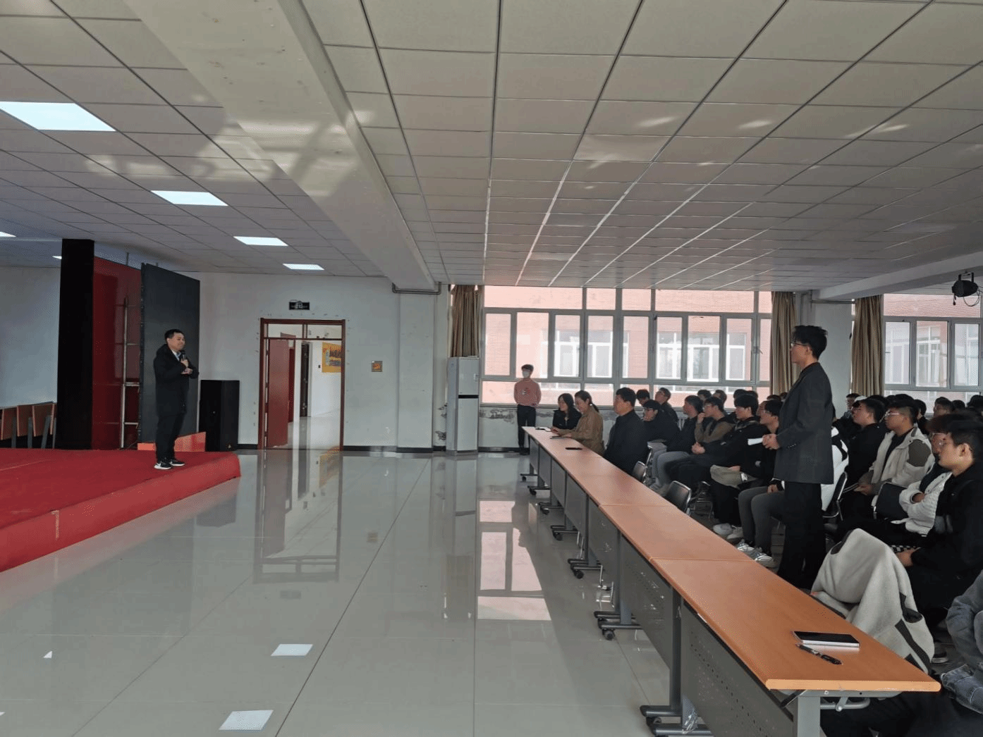 张局长首先就西藏的文化底蕴、企业背景、企业文化、发展前景以及对员工的管理文化等方面进行了详细宣讲,对报名、笔试、面试、确定录取意等报考流程进行了重点介绍,同学们对国家电网西藏电力公司兴趣浓厚,很多同学对自己关心的问题进行了现场提问,宣讲现场热火朝天。