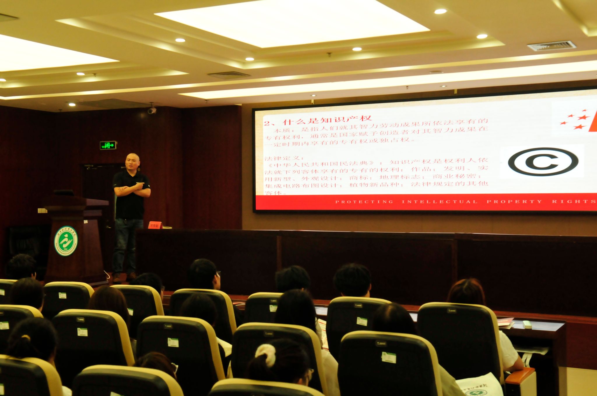 4月26日下午,在第24个世界知识产权日之际,我校在弘文守正楼9楼学术报告厅举行“知识产权专题讲座”,邀请沧州市华阳知识产权代理有限公司资深专家刘智聪老师主讲,100余名师生参加此次活动。