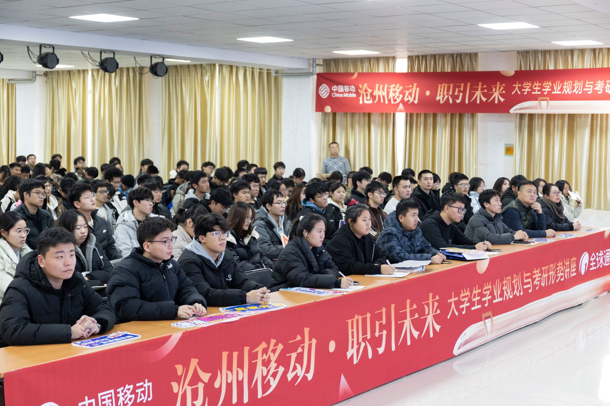 为帮助我校学生明确学业目标,制定合理的考研规划,学生处联合沧州移动特邀学业规划专家于12月12日下午在启智楼学生活动室举办“学业规划与考研形势分析”讲座。共计250余名学生参加此次讲座